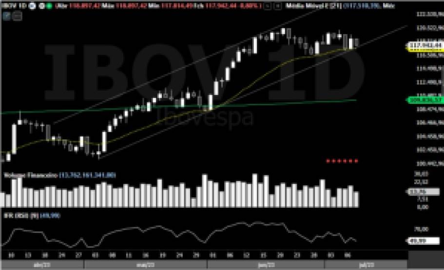 Ibovespa opera com queda de 0,33%, aos 117.553,13 pontos; enquanto Ibovespa Futuro cai 0,11%, aos 118.965 pontos