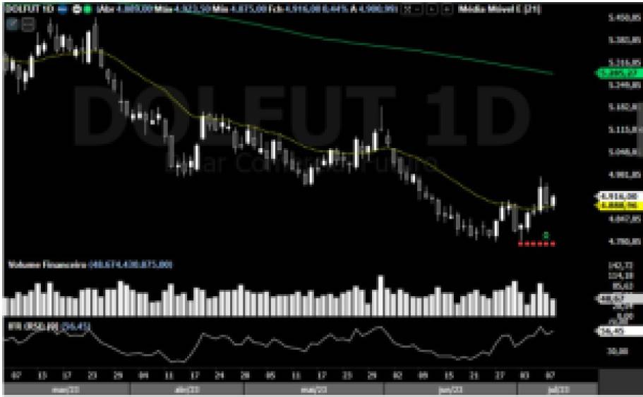 Ibovespa Futuro fecha com alta de 0,08%, aos 119.200 pontos; e dólar futuro, com queda de 0,93%, a R$ 4,8705, mínima do dia