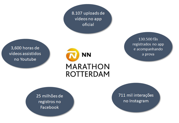 Este movimento é também uma forma de trazer mais jovens para as provas. Para se ter uma ideia da conectividade que cerca uma prova hoje, na Maratona de Rotterdam de 2018, que teve cerca de 43 mil inscritos, o organizador (NN) registrou os seguintes números:
