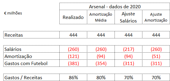 Mantendo a amortização e ajustando os salários significa reduzir a folha em € 43 milhões anuais, reduzindo capacidade competitiva. Se mantiver a folha e reduzir a amortização, significa reduzir investimentos em contratações, também impactando capacidade competitiva. Menor amortização significa menos atletas contratados ou valores menores.