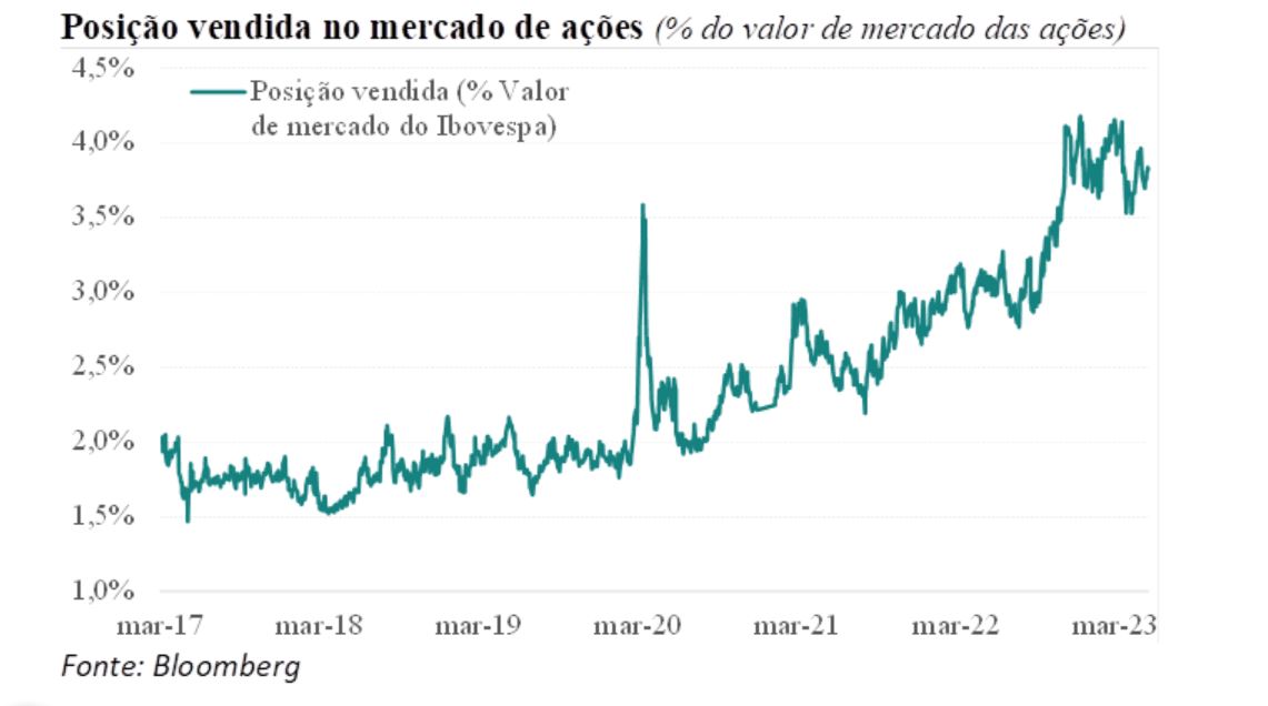A casa também destaca que a posição dos investidores locais em ações é bastante baixa atualmente: os fundos multimercados parecem pouco alocados em ações e a posição vendida em ações na B3 ainda está elevada, sendo este outro fator por trás da alta do Ibovespa.