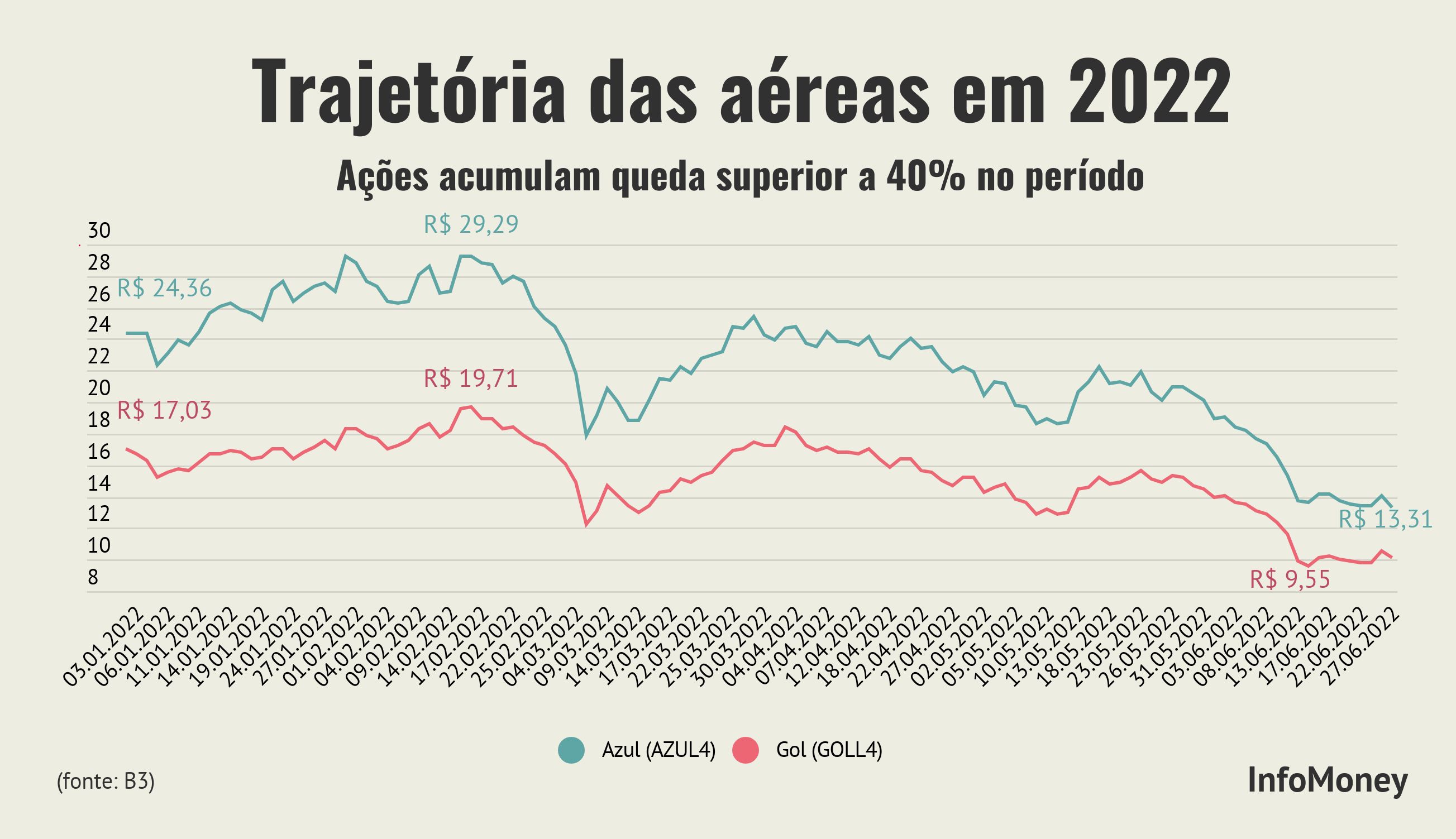 “Isso acontece porque o investidor está sempre antecipando potenciais situações econômicas. Hoje, a principal discussão é se a alta dos juros pelo Federal Reserve, nos Estados Unidos, vai gerar recessão na economia global ou não. E o transporte aéreo é um dos primeiros a sentir o impacto de uma recessão”, explica Renato Hallgren.