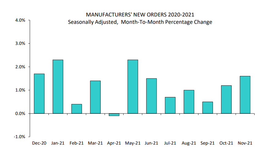 12h00 – EUA: Encomendas à indústria em novembro cresce 1,6% na base mensal, ante consenso de 1,5%
