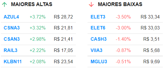 12h23 – As 5 maiores altas agora entre as ações que compõem o Ibovespa são