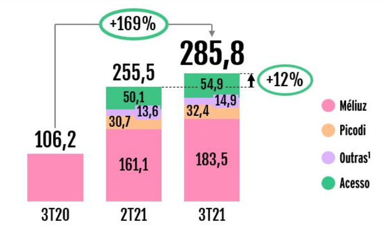 Receita líquida pro-forma da Méliuz com aquisições nos últimos 12 meses (em R$ milhões)