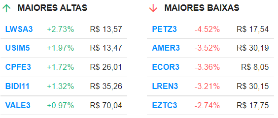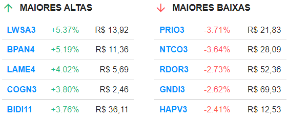 18h30 – Encerramos a cobertura de hoje. Confira os principais destaques do Ibovespa.