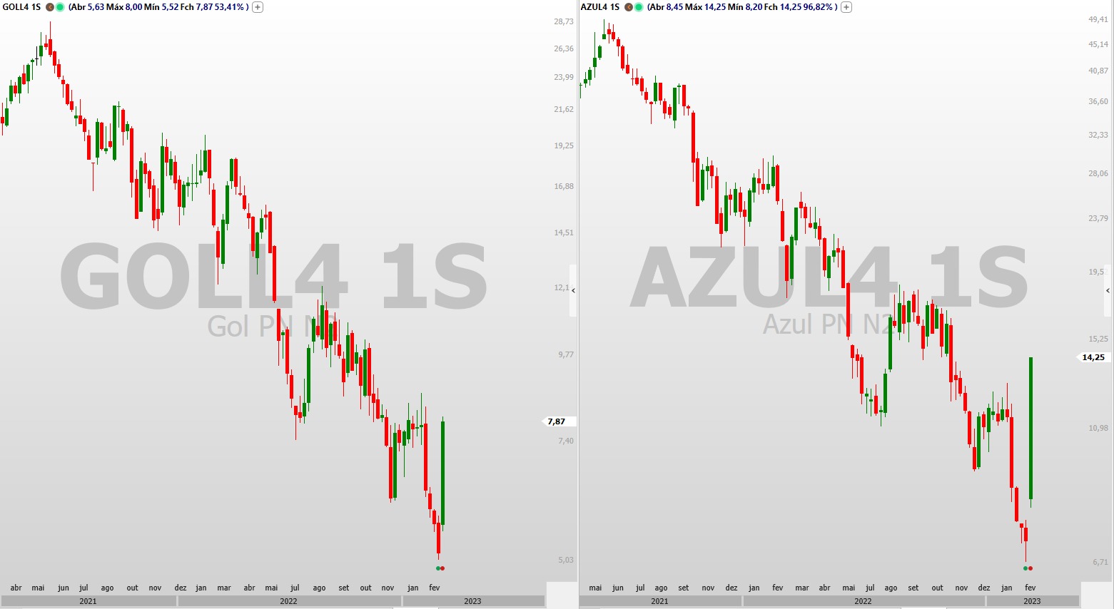 “Ao superar a resistência mais alta, Gol aparece ter uma vantagem gráfica, configurando uma tendência de alta mais clara e mais rápida”, analisa Lima.