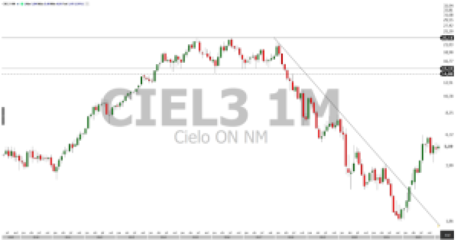 Os analistas técnicos do Itaú BBA Fábio Perina, Lucas Piza e Igor Caixeta, em relatório, destacam que a “CIEL3 colocou fim ao movimento de realização, após segurar no suporte de R$ 4,81.”