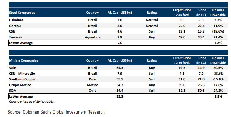 O Goldman tem recomendação neutra para Usiminas e Gerdau e de venda para CSN, enquanto tem recomendação de compra para Vale (VALE3) entre as mineradoras. Confira abaixo as projeções para as ações das companhias: