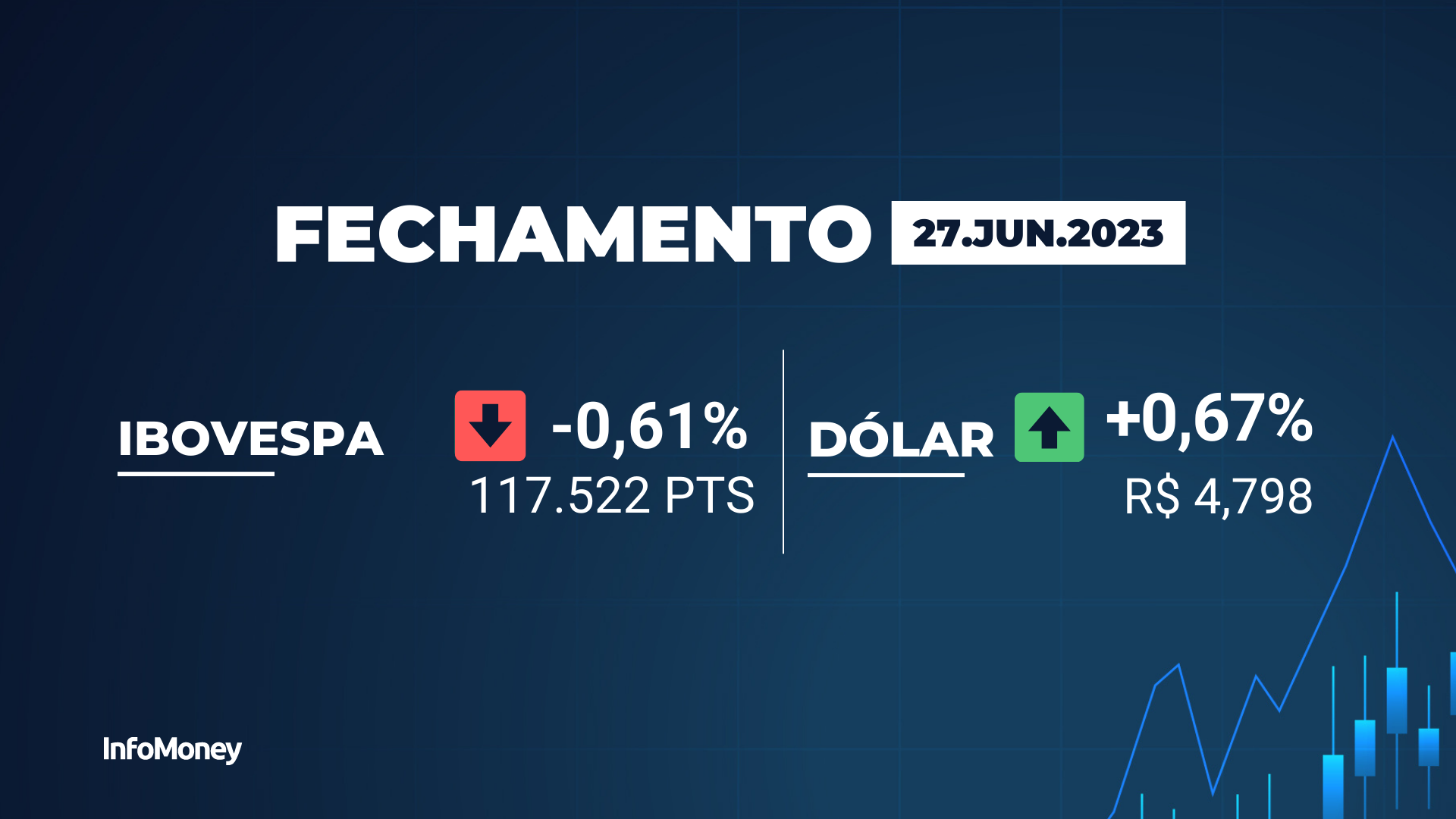 O dólar comercial fechou o dia cotado a R$ 4,798 na compra e R$ 4,799 na venda, com alta de 0,67%.