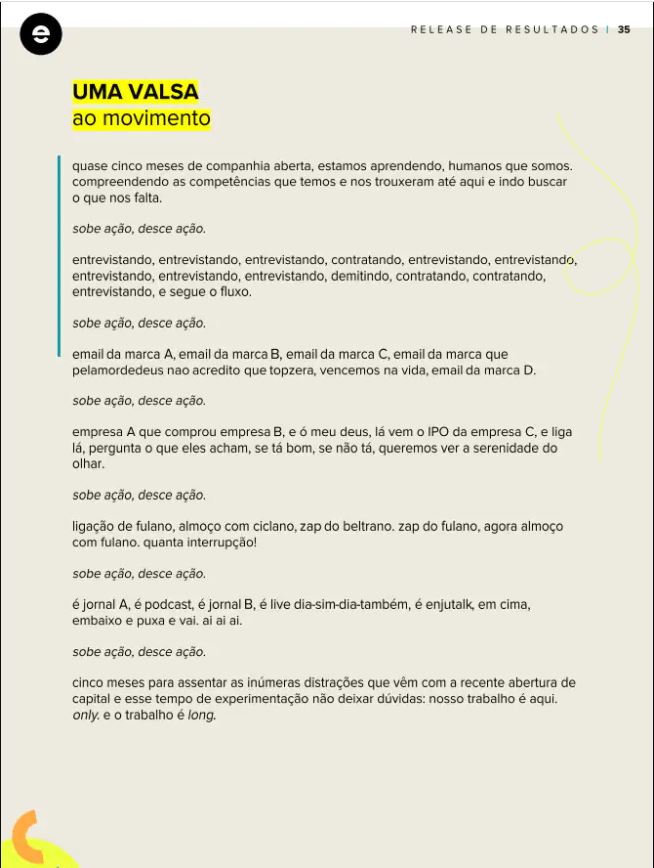 Confira abaixo o poema divulgado pela Enjoei em seu release de resultados: