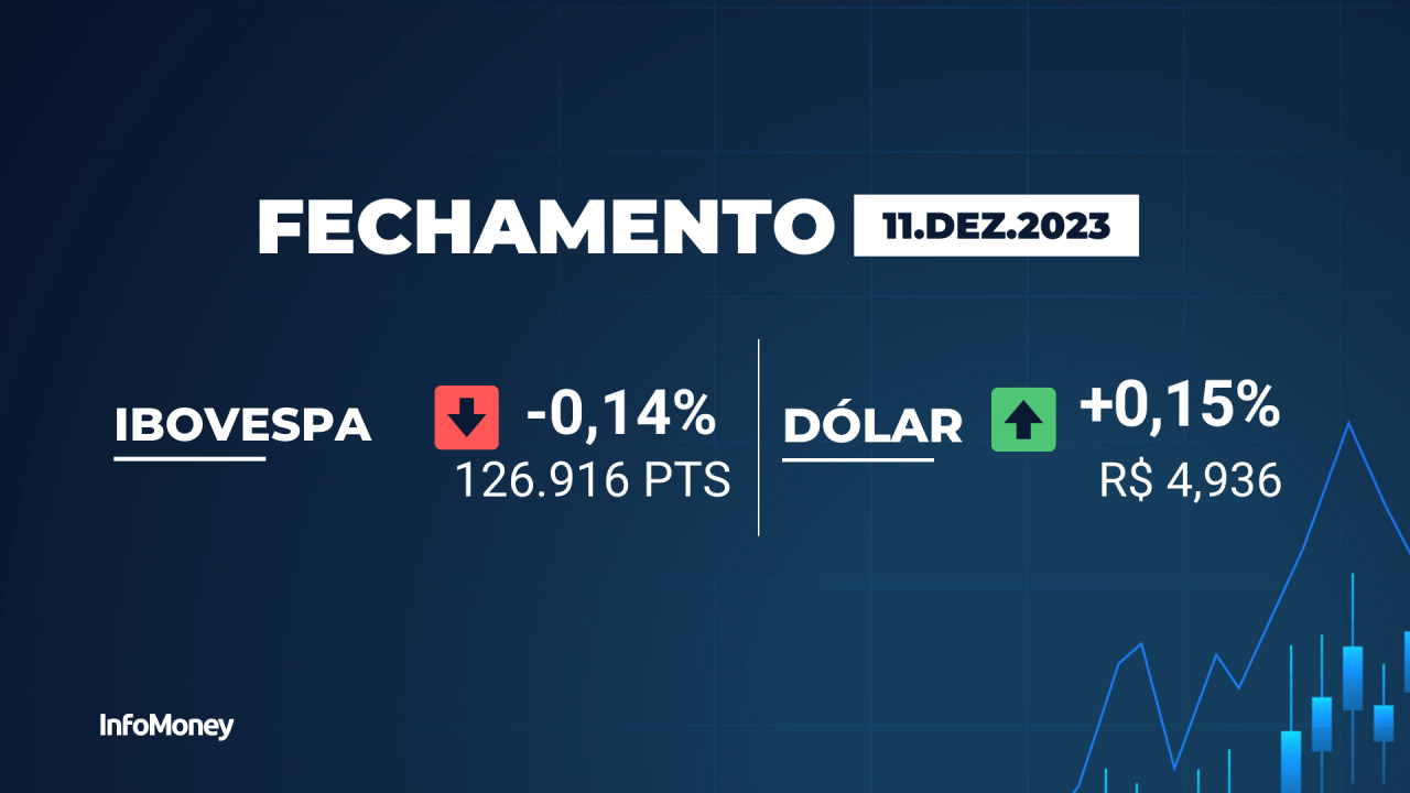 O Ibovespa fechou em leve queda de 0,14% nesta segunda-feira (11), aos 126.916 pontos, em um pregão marcado pela cautela, com investidores aguardando a Super Quarta – quanto os bancos centrais brasileiro e americano tomam suas últimas decisões em relação à política monetária do ano.