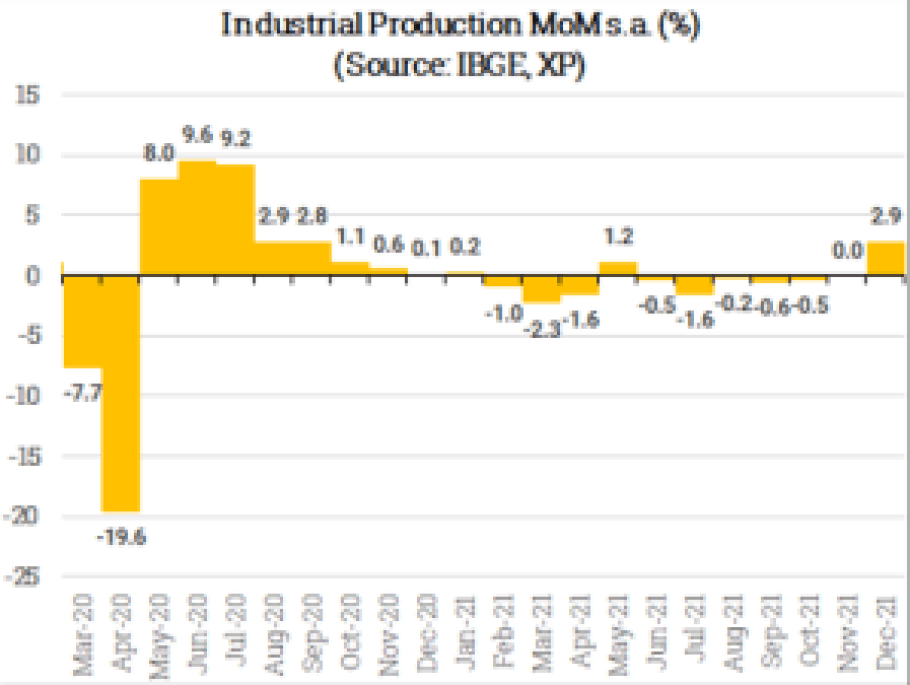 Na agenda do dia desta quarta, é destaque, pela manhã, a publicação pelo Instituto Brasileiro de Geografia e Estatística (IBGE) a produção industrial brasileira em dezembro, às 9h. Pouco depois, a Fenabrave divulga as vendas de veículo em janeiro, às 10h. Nos EUA, ainda em dados macroeconômicos, às 10h15 há a publicação da criação de vagas de emprego de janeiro pelo ADP.