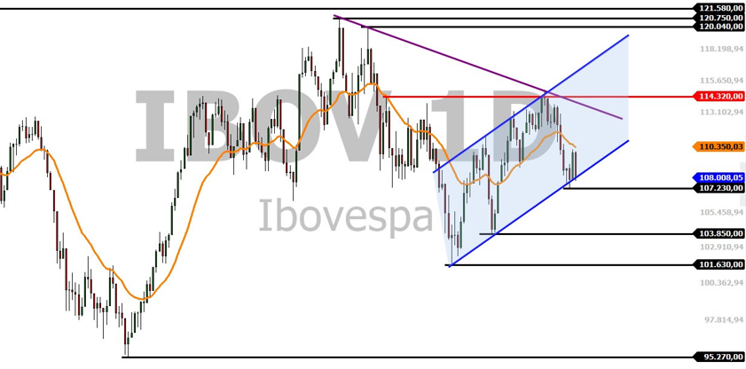 Ibovespa Futuro (INDFUT) sobe 0,12%, aos 108.235 pontos