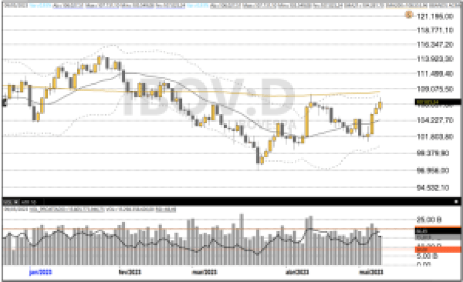 É a quarta alta seguida do Ibovespa e é o maior patamar que o índice fecha desde 23 de fevereiro de 2023, quando encerrou o dia com 107.592,87 pontos.