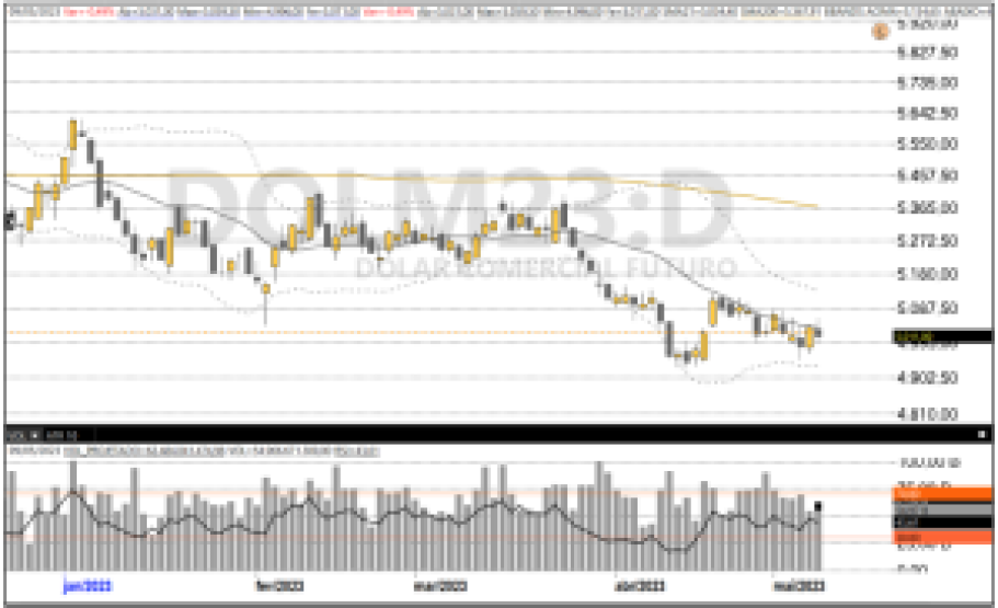 O dólar se desvalorizou diante do real e voltou a ficar abaixo do patamar de R$ 5, em caminho contrário ao movimento da moeda norte-americana pelo mundo: o índice DXY ficou com mais de 0,26%. Os investidores aguardam os dados de inflação nos EUA amanhã para se posicionar, enquanto digerem os acontecimentos políticos no país, como a provável colocação em pauta do arcabouço fiscal ainda esta semana.