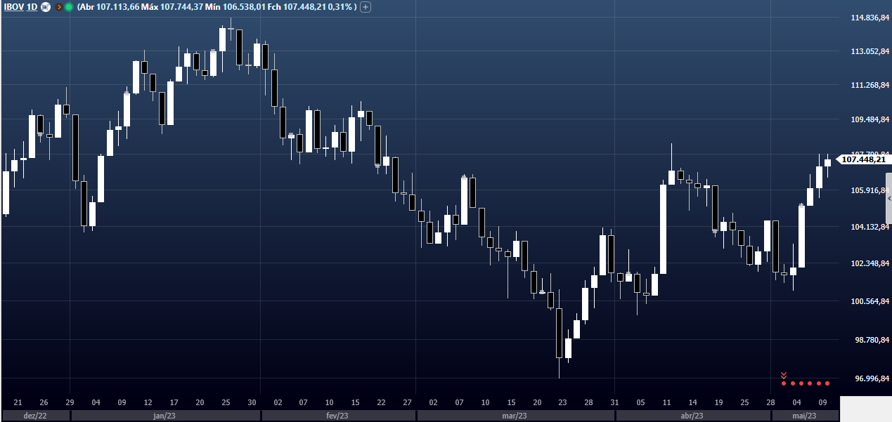 É a quarta alta seguida do Ibovespa e é o maior patamar que o índice fecha desde 23 de fevereiro de 2023, quando encerrou o dia com 107.592,87 pontos.