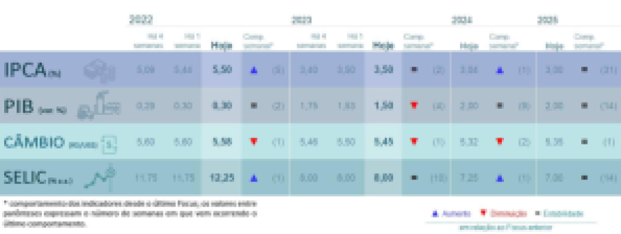 Em 2023, mercado agora vê o PIB do país crescendo 1,50%, ante 1,53% no último boletim, e câmbio em R$ 5,45, ante R$ 5,50 na publicação da semana passada.