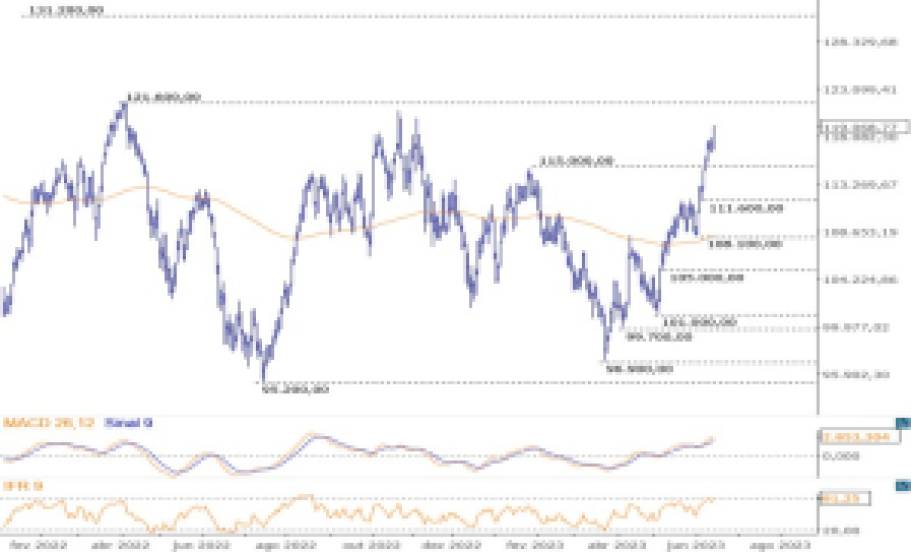 Gráfico do Ibovespa: outubro de 2022 a junho de 2023