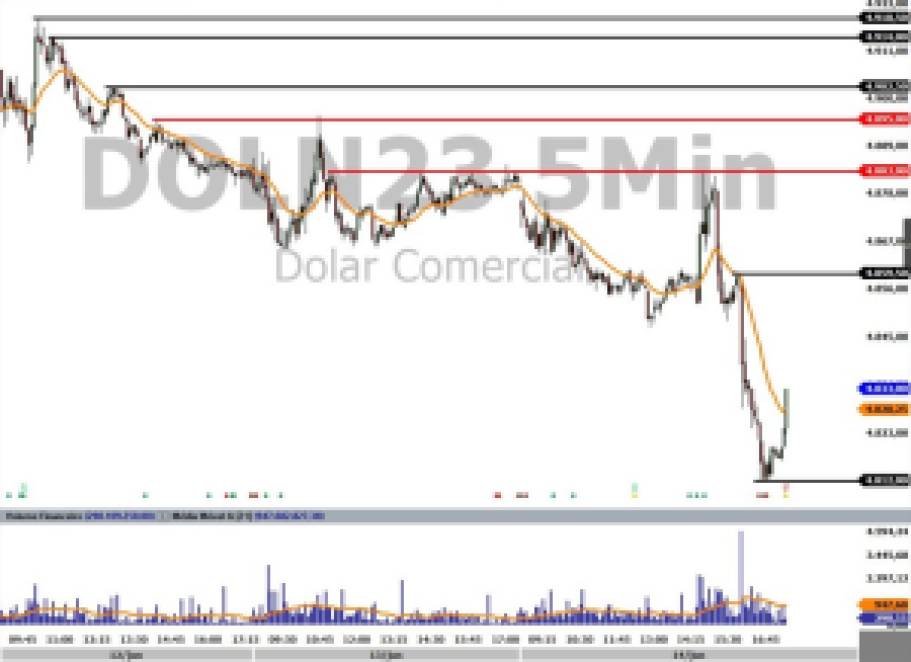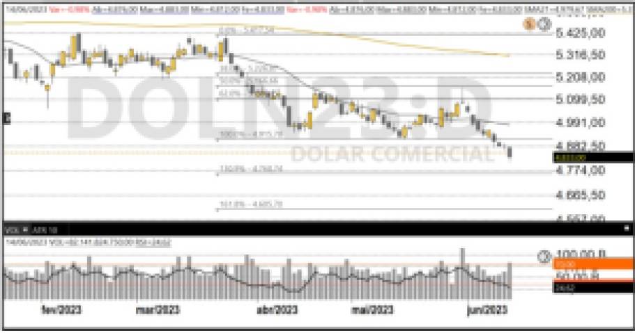 O dólar cai pela quinta sessão seguida frente ao real, mesmo movimento da divisa norte-americana na comparação com as principais moedas do mundo: o índice DXY ficou com forte queda de 0,80%. O câmbio recuou com a previsão de que o Fed está próximo de encerrar seu ciclo de alta – nos EUA, os Treasuries recuaram por toda a curva.