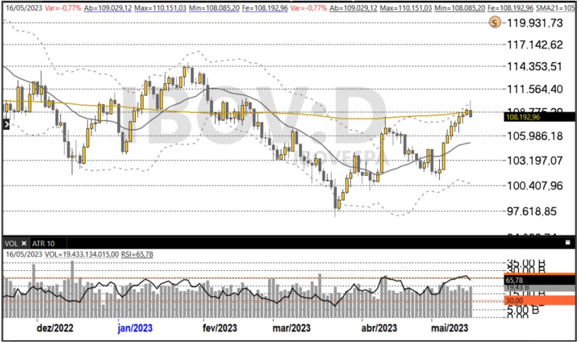 Ibovespa fechou ontem com queda de 0,77%, aos 108.193,68 pontos