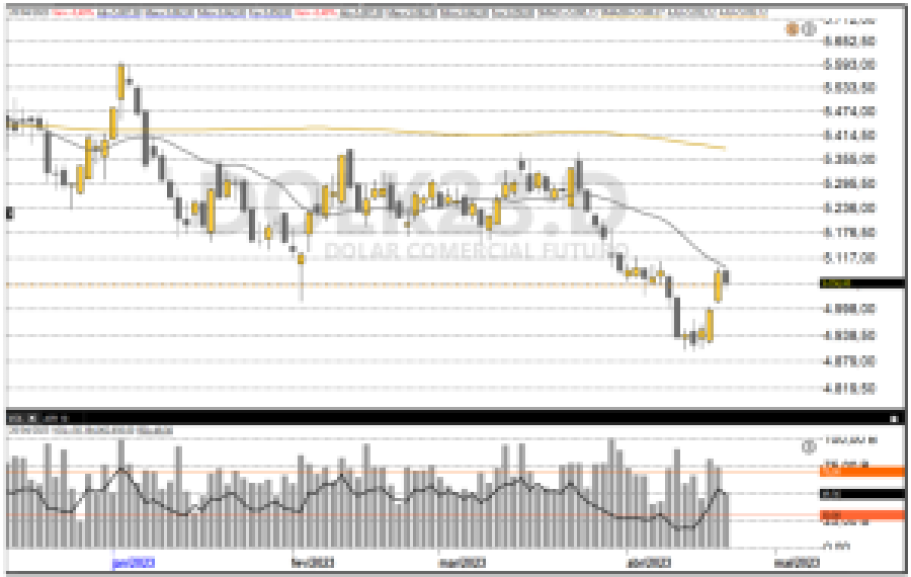 O dólar se desvalorizou diante do real, mas ainda acima dos R$ 5. A moeda norte-americana também se desvalorizou no mundo, embora sem amplitude: o índice DXY ficou com menos 0,10%. O real conseguiu impulso com a correção da forte queda dos dias anteriores, além das notícias positivas no campo político, como a escolha do relator do projeto da nova regra fiscal, que mostra que a matéria está andando, e as medidas anunciadas para destravar o crédito e ampliar os investimentos em PPPs.