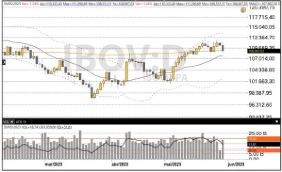 - Ibovespa ampliou suas perdas na reta final da sessão, fechando com perdas de 0,58%, aos 108,3 mil pontos, com investidores à espera da aprovação do aumento do teto da dívida nos EUA, que deve ocorrer hoje.