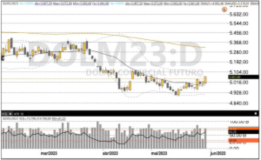 Em maio, o Ibovespa futuro encerrou com alta acumulada de 3,42%, enquanto o dólar futuro subiu 1,04%.