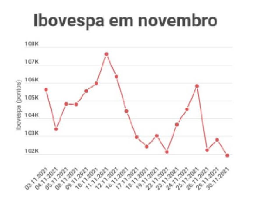 SÃO PAULO – O último pregão do mês teve aquilo que o Ibovespa mais passou ao longo de novembro: volatilidade. O índice de referência para o mercado brasileiro de ações testou um limite perigoso, quase perdendo os 100 mil pontos, um suporte técnico de acordo com analistas gráficos. “Se perdermos os 100 mil pontos, vamos para os 94 mil e aí o mês de dezembro seria negativo. Mantendo os 100 mil, teríamos espaço para voltar aos 108 mil e depois para os 110 mil”, explica Fabrício Gonçalvez, CEO da Box Asset Management.