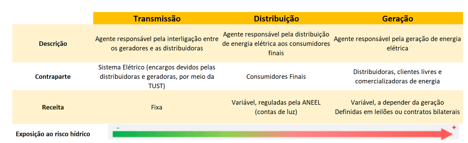 Confira a exposição do risco hídrico por segmento do setor elétrico (segundo análise da XP):
