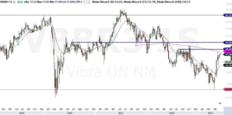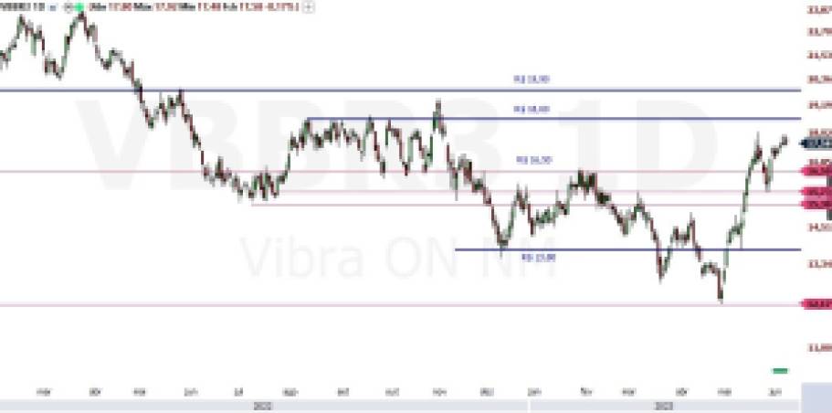 Para a Levante, a tendência para as ações de Vibra seguem indefinidas no longo e no médio prazos, enquanto no curto é de alta. Os primeiros suportes são R$ 16,50 (1) e R$ 15,20 (2) e as resistências estão em R$ 18,20 (1) e R$ 19,80 (2).