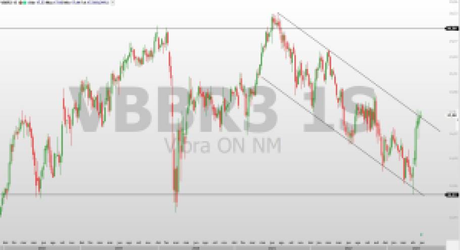 Para ela, a ação vem trabalhando em um canal largo de baixa e, depois do teste na resistência, mostrou boa reação compradora, com continuidade no suporte da lateralização maior.