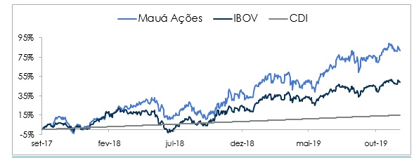Nesse contexto, a Mauá Capital tem expertise para ser um dos mais atraentes fundos do mercado para investidores de diversos perfis. O resultado acumulado de 2019, até outubro, prova isso. O rendimento do fundo atingiu 40,3%, nesse período. É quase o dobro da valorização do Ibovespa, que ficou em 22%. Já o investidor que contou com aplicações atreladas ao CDI viu rendimentos decepcionantes. Com a queda da Selic, o desempenho do CDI ficou em módicos 5,16%.