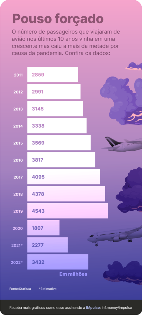 Para 2022, a previsão era de uma recuperação ainda maior, chegando a 3,4 bilhões de passageiros.