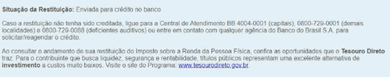 Por outro lado, caso apareça uma mensagem relacionada com “enviado crédito para o banco”, isso significa que o contribuinte foi contemplado no lote e o valor foi enviado para o banco fazer o depósito.
