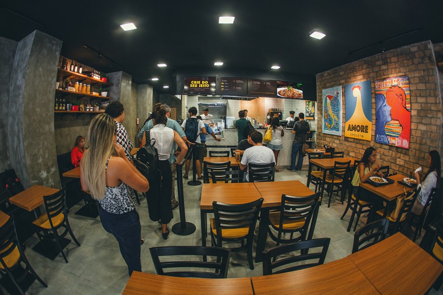 Cerca de 24 unidades da Spoleto já se enquadram no novo padrão da marca, que fiz com que ela apresentasse desempenho de 10% em produtos e 13% em faturamento acumulado ao ano. A expectativa é fechar o ano com 61 restaurantes neste novo modelo. As franquias abertas desde julho do ano passado já seguem este padrão.