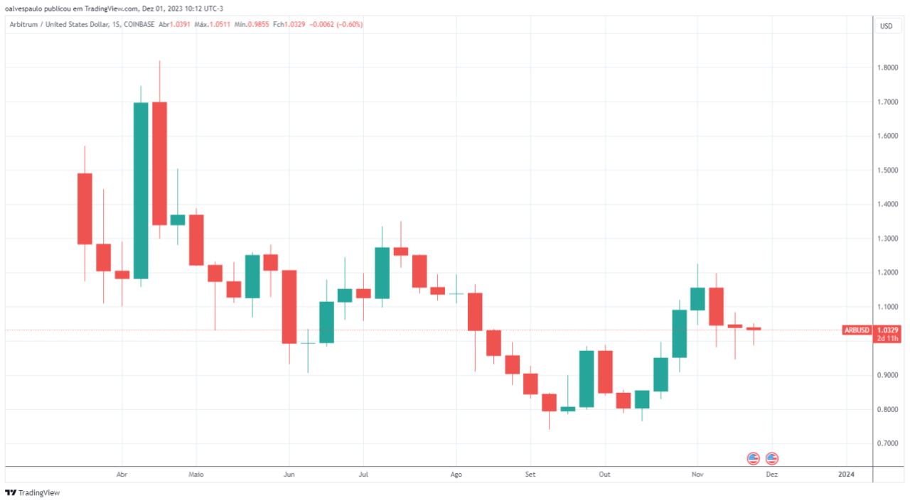 No acumulado do ano, o token ARB registra queda de mais de 30%.