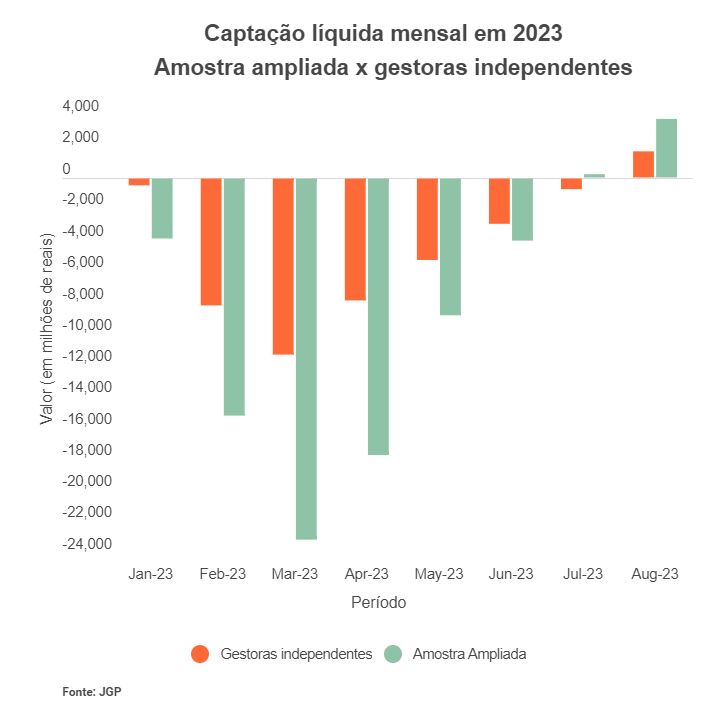 Após um começo de ano delicado, a indústria de fundos que alocam em crédito privado parece finalmente respirar mais aliviada: as captações líquidas de gestoras independentes (não vinculadas a bancos de varejo) caminham para voltar para o positivo em agosto. É isso o que mostra um estudo feito pela JGP enviado com exclusividade ao InfoMoney.