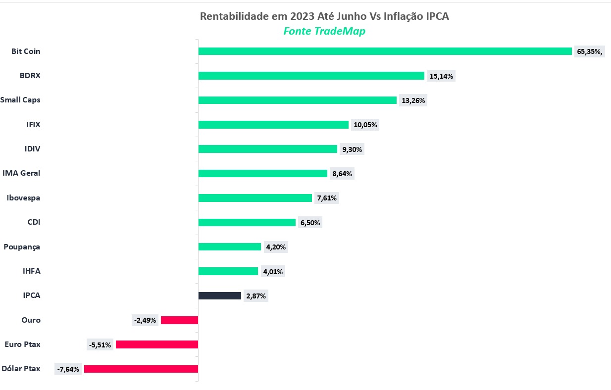 Em junho, o ouro registrou queda de 6,2%, o dólar de 5,4% e o euro de 3,06% – e também perderam para o IPCA do período, a deflação de 0,08% divulgada nesta terça-feira (11). No mês passado, o Ibovespa encabeçou a lista dos melhores investimentos.