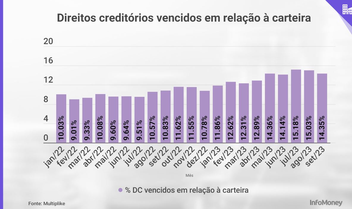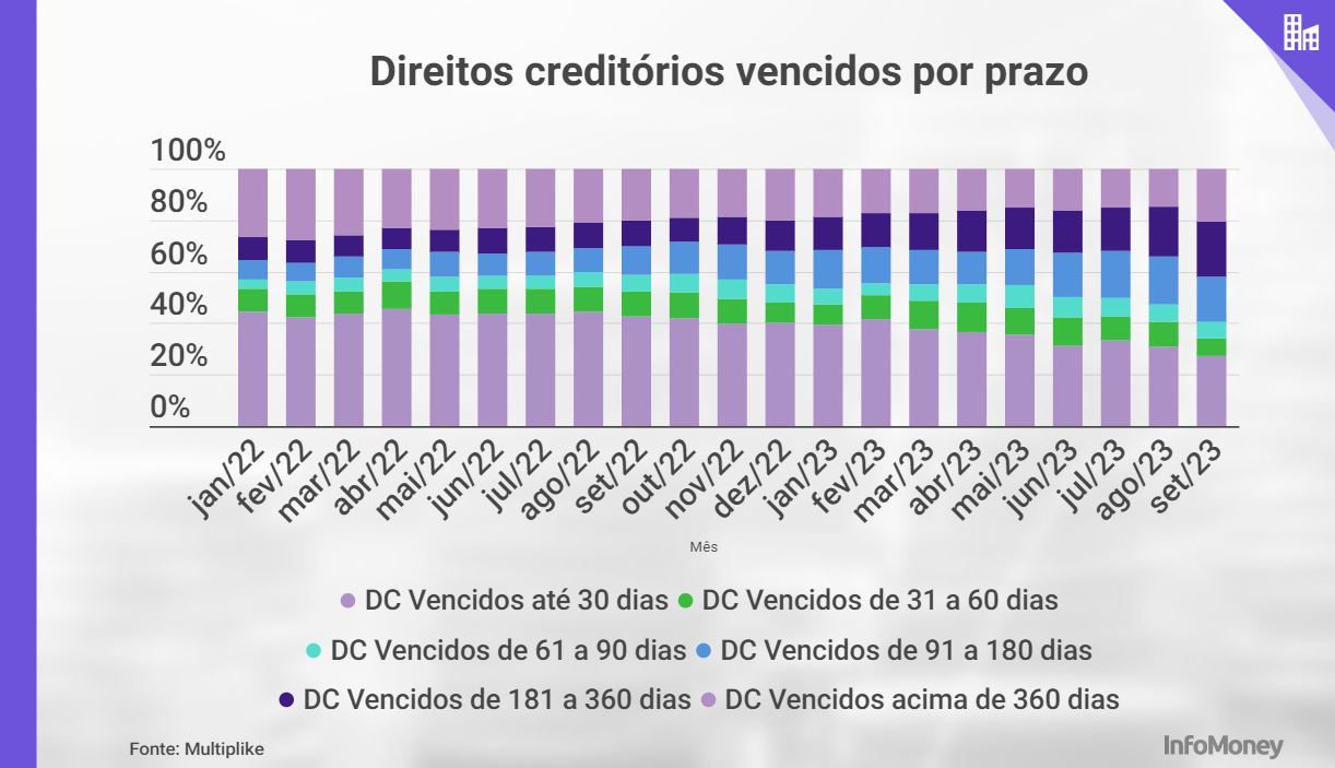 No caso dos direitos creditórios vencidos a mais de 360 dias, é possível perceber que o número vem aumentando e chegou a 20,3% em setembro — maior valor já registrado neste ano.