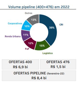De acordo com o levantamento, o mês passado terminou com R$ 600 milhões captados pelos FIIs, volume inferior à média mensal de 2021, em torno de R$ 4,3 bilhões. Em janeiro, as captações somaram R$ 200 milhões.