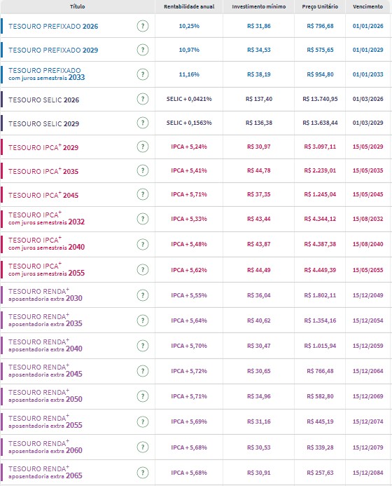 Confira os preços e as taxas dos títulos públicos disponíveis para compra no Tesouro Direto na manhã desta sexta-feira (1º):