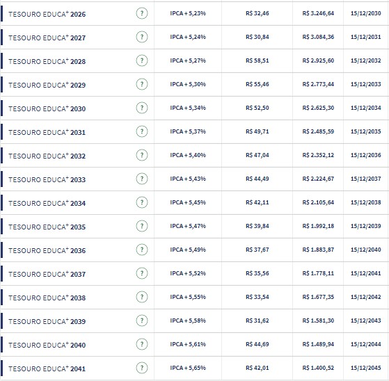 Diante das notícias importantes, as taxas dos títulos do Tesouro Direto apresentavam abertura considerável na primeira atualização do dia, às 9h23. Nos prefixados, o papel com vencimento em 2033, que entregava rentabilidade de 10,99% ontem, hoje paga 11,16%. A taxa do Tesouro Prefixado 2029 avançava de 10,77% para 10,97%, enquanto a do Tesouro Prefixado 2029 subia de 10,08% para 10,25%.