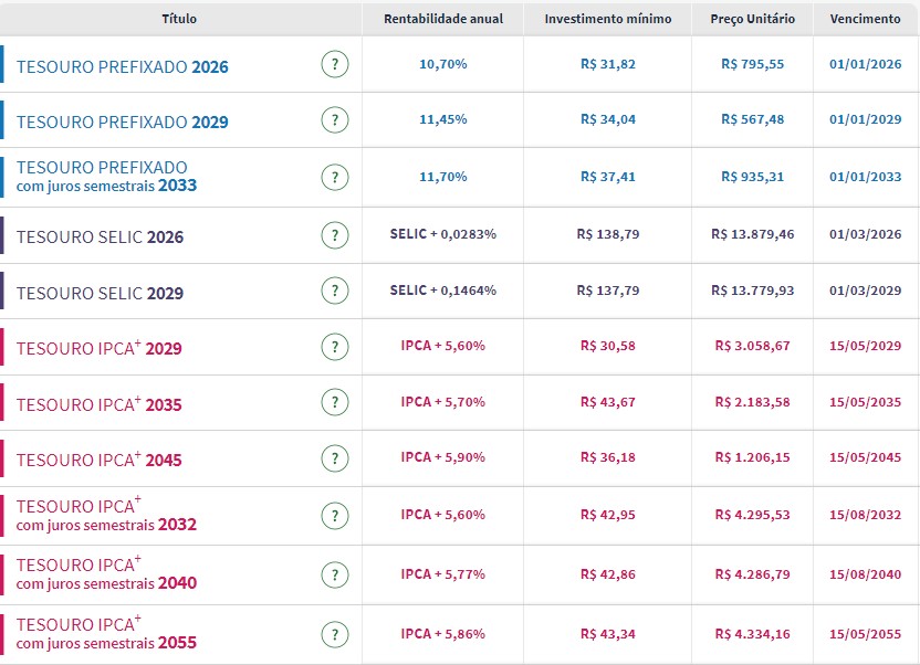 Confira os preços e as taxas dos títulos públicos disponíveis para compra no Tesouro Direto na manhã desta segunda-feira (2):