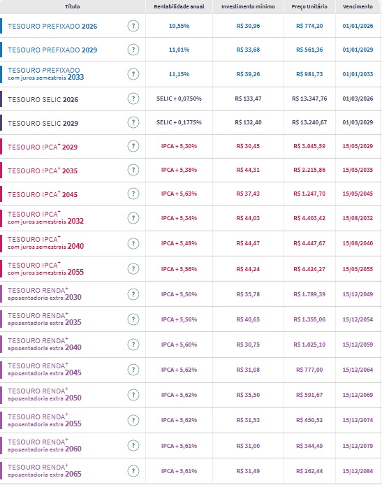 Confira os preços e as taxas dos títulos públicos disponíveis para compra no Tesouro Direto na tarde desta quinta-feira (15):