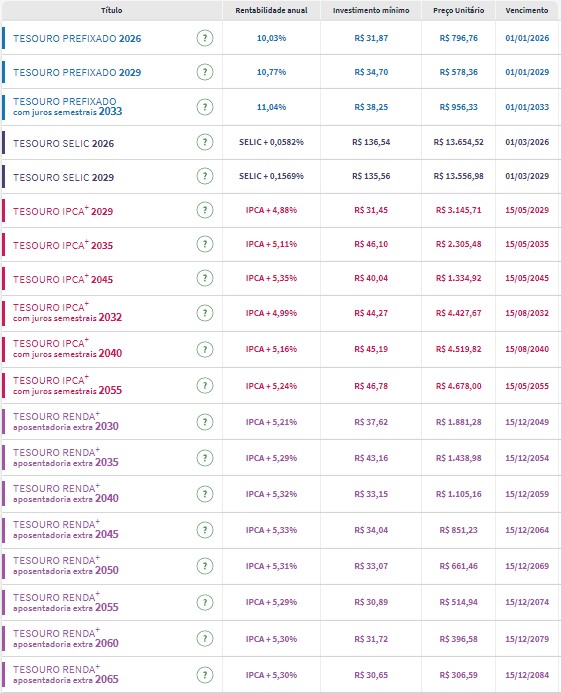 Confira os preços e as taxas dos títulos públicos disponíveis para compra no Tesouro Direto na manhã desta quarta-feira (16):