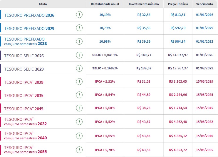 Confira os preços e as taxas dos títulos públicos disponíveis para compra no Tesouro Direto na manhã desta sexta-feira (17):