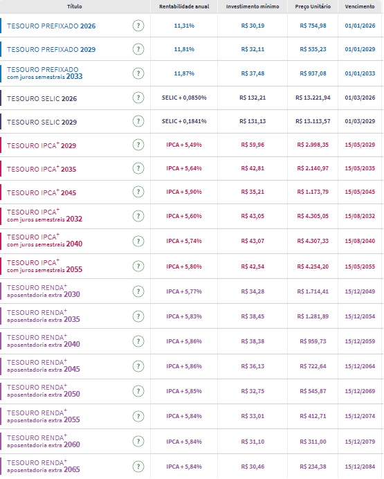 Confira os preços e as taxas dos títulos públicos disponíveis para compra no Tesouro Direto na tarde desta sexta-feira (19):