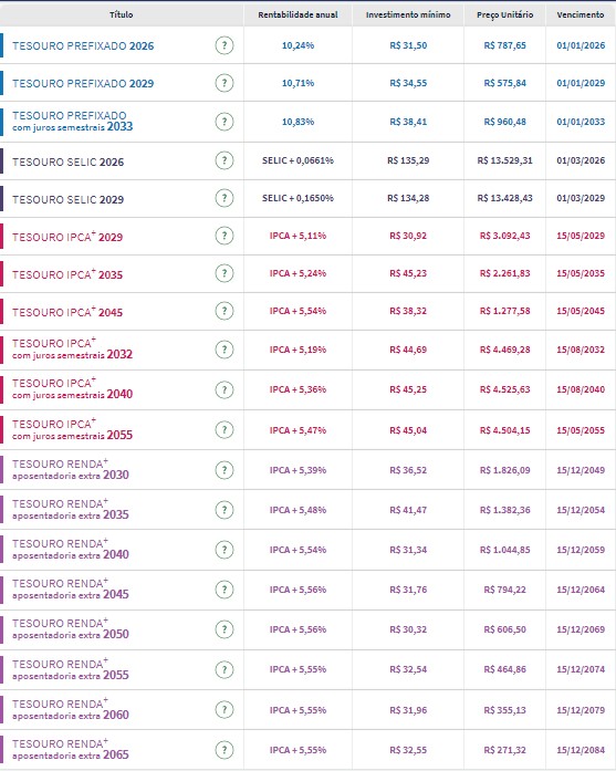 Confira os preços e as taxas dos títulos públicos disponíveis para compra no Tesouro Direto na manhã desta sexta-feira (21):