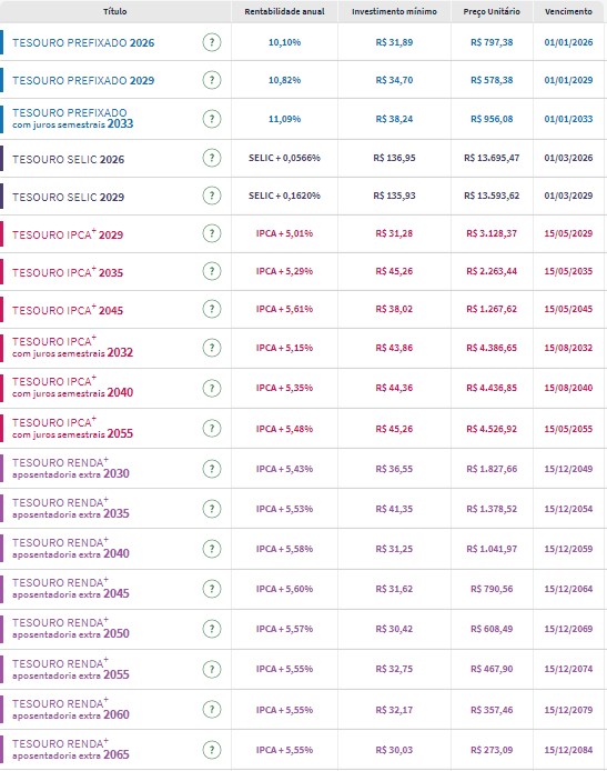 Confira os preços e as taxas dos títulos públicos disponíveis para compra no Tesouro Direto na manhã desta quinta-feira (24):